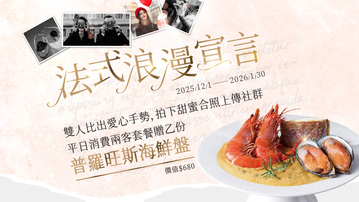 比出愛心手勢合照上傳社群|12-1月款待普羅旺斯海鮮盤